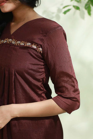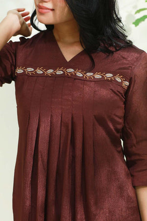 Aari Work Brown Alia Cut Kurti