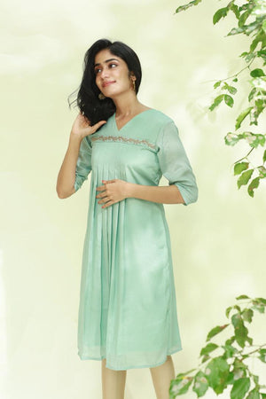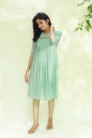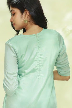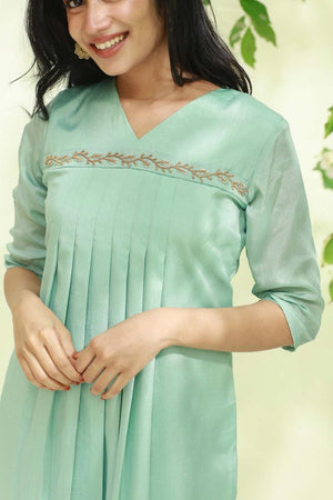 Aari Work Pista Green Aliya Cut Kurti