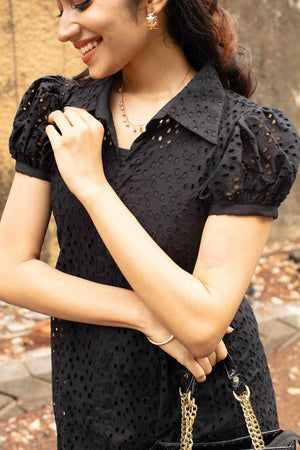 - Princesses cut A-lineTop having collar neck with front zip nd this is having puff short sleeves nd sleeves not having no linning
