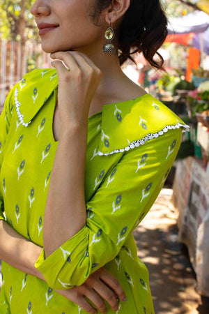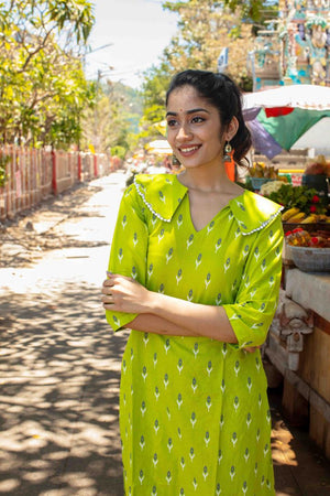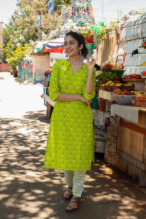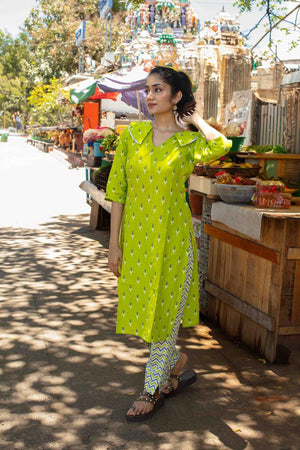 Cambric Radium Green Kurti Set