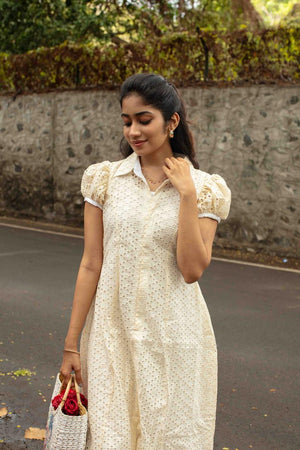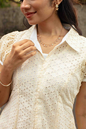 - Princesses cut A-lineTop having collar neck with front zip nd this is having puff short sleeves nd sleeves not having no linning