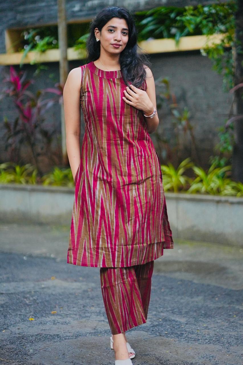 Rust Mirage Handwoven Ikat Cotton Co-ord Set
