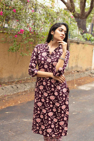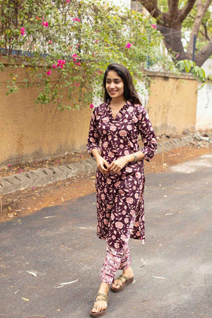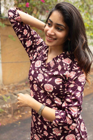 Majenta Pleated V neck Kurti set