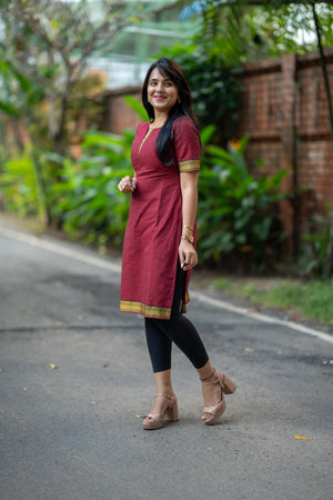 Mangalgiri Rose Red Color Kurti)