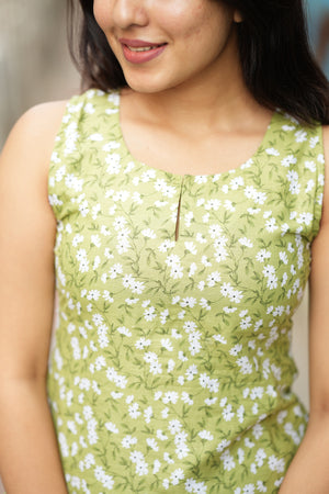 - Colour:Fresh Green with White Floral Print