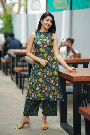 - Design:Flared Kurti With Side Slits for Comfort&Printed Matching Bottom