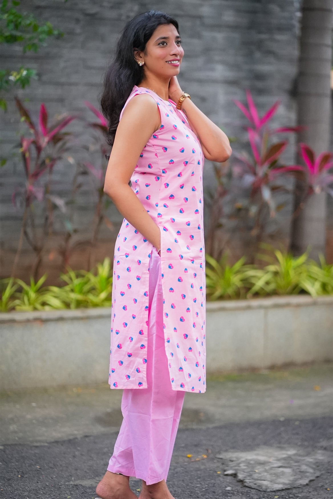 Peony Pink Print Glassy Cotton 2-Piece Set